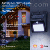 Фасадный светильник с датчиком движения, на солнечной батарее, 20LED, 60 lm ERAFS064-04 ЭРА