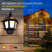 Фасадный светильник Фонарь,2 режима(огонь,холодный свет),на солн. бат.,40LED,7lm ERAFS08-36 ЭРА