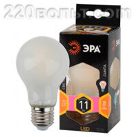 Лампа светодиодная ЭРА F-LED A60-11W-827-E27 frost (филамент, груша мат., 11Вт, тепл., Е27)