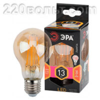 Лампа светодиодная ЭРА F-LED A60-13W-827-E27 gold (филамент, груша золот., 13Вт, тепл., Е27)