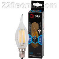 Лампа светодиодная ЭРА F-LED BXS-11W-827-E14 (филамент, свеча на ветру, 11Вт, тепл, E14)