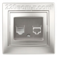 Intro Plano Розетка телефонная RJ11, IP20, СУ, алюминий 1-302-03