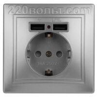 Intro Plano Розетка+USB, IP20, СУ, алюминий 1-410-03