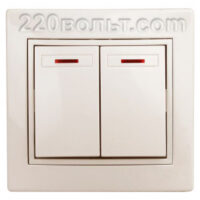 Intro Plano Выключатель двойной с подсветкой 10А-250В, IP20, СУ, сл. кость 1-105-02