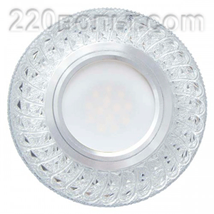 Светильник потолочный встраиваемый (ИВО) FERON 7057, под лампу MR16 G5.3, прозрачный, круг, 92*92*25 мм, с led подсветкой, монтажный диаметр 56мм, корпус металл + пластик-акрил прозрачный, неповоротный.