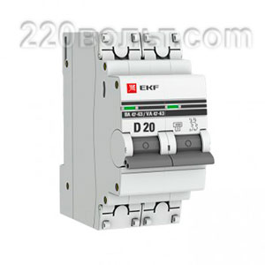 Автоматический выключатель ВА 47-63, 2P 20А (D) 4,5kA EKF PROxima