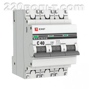 Автоматический выключатель ВА 47-63, 3P 40А (C) 4,5kA EKF PROxima
