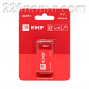 Батарейка алкалиновая типа 9V(6LR61) (Крона) EKF