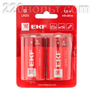 Батарейка алкалиновая типа D(LR20) уп/2шт EKF