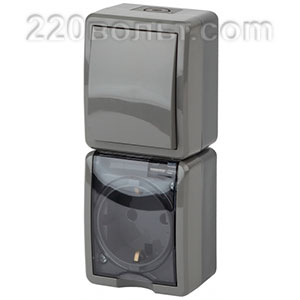 Блок розетка+выключатель вертикальный IP54, 16A 250 В Эра Эксперт, серый 11-7407-03 ЭРА герметичный