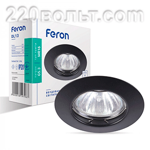 Светильник потолочный встраиваемый (ИВО) FERON DL13, под лампу MR16 G5.3, черный, круг, 80*80*25 мм, монтажный диаметр 60мм, корпус металл, поворотный.
