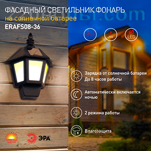 Светильник на солнечной батарее ERAFS08-36 станет чудесным дополнением фасада вашего дома, террасы, беседки.