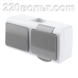 Intro Atlantic Блок розетка+выключатель 2P+E, 10(16)А-250В, IP54, ОУ, серый 5-701-03 герм