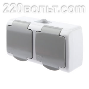 Intro Atlantic Розетка двойная с/з 2х2P+E Schuko, 16А-250В, IP54, ОУ, серый 5-203-03 гермечиная.