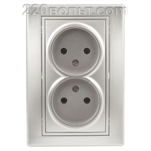 Intro Plano Розетка 2х2P, 16А-250В (керам.+ поджим), IP20, СУ, алюминий 1-204-03