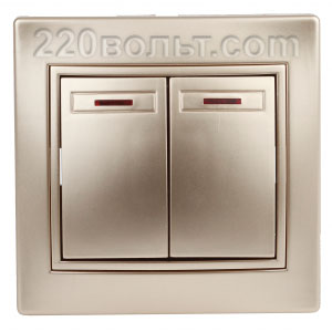 Intro Plano Выключатель двойной с подсветкой 10А-250В, IP20, СУ, шампань 1-105-04