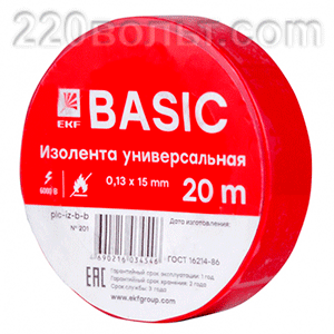 Изолента, класс А (профессиональная), 0.18х19мм, 20 метров, красная EKF Simple