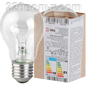 Лампа накаливания ЭРА A50 (груша) 40Вт 230В Е27 в гофре