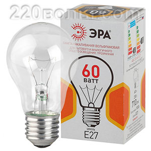 Лампа накаливания ЭРА A50 груша 60Вт 230В Е27 цв. упаковка