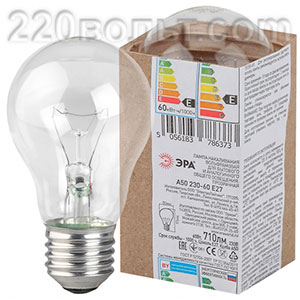 Лампа накаливания ЭРА A50 (груша) 60Вт 230В Е27 в гофре