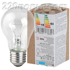 Лампа накаливания ЭРА A50 (груша) 75Вт 230В Е27 в гофре