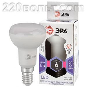 Лампа светодиодная ЭРА LED R50- 6W-860-E14 (диод, рефлектор, 6Вт, холод, E14)