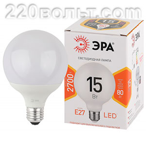Лампочка светодиодная ЭРА STD LED G95-15W-2700K-E27 E27 / Е27 15Вт шар теплый белый свет