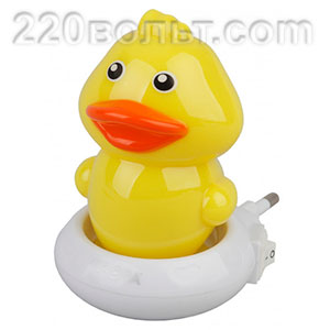 Ночник в виде милой желтой уточки со светодиодами (LED) в качестве источников света. C выключателем. Работает от сети: с оборотной стороны уточки находится вилка, которая подключается в розетку. Идеальный подарок как для детей так и для взрослых. Упаковка позволяет проверить работу ночника не доставая его из блистера, нужно включить его в розетку и нажать выключатель.
