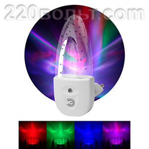 Ночник «Пузырьки» со светодиодами (LED) в качестве источников света и встроенным датчиком освещённости (включается автоматически, когда становится темно). Ночник постоянно переливается разными цветами. Упаковка позволяет проверить работу ночника не доставая его из блистера, нужно только включить его в розетку и прикрыть датчик освещенности рукой.