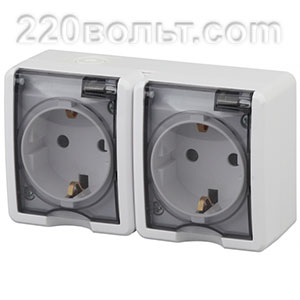 Розетка двойная с заземлением герметичная горизонтальная Эра Эксперт
