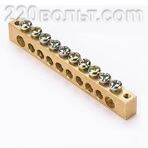 Шины предназначены для присоединения нулевых проводников (шина N) и заземления (шина PE). Шины выполнены из латуни и никелированной латуни. Нулевая шина устанавливается на изоляторе.