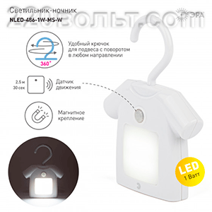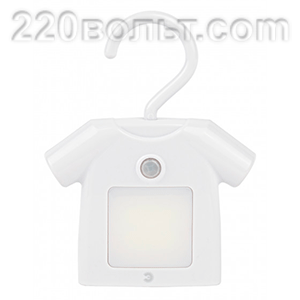 Светильник-ночник «Рубашка на вешалке» ЭРА представлен в 4-х вариациях: модель NLED-485-1W-SW-BU (арт. 33099893) – голубой с выключателем; модель NLED-485-1W-SW-W (арт. 33102320) – белый с выключателем; модель NLED-486-1W-MS-BK (арт. 33105999) – черный с датчиком движения; модель NLED-486-1W-MS-W (арт. 33107703) – белый с датчиком движения. Модель с датчиком движения включается при движении в зоне 2,5 м, выключается автоматически через 30 секунд после окончания движения. Светильник автономный, работает от элементов питания 3 х ААА (не входят в комплект поставки), у него есть крючок для подвеса с поворотом в любом направлении. Есть магнитное крепление — на металлических поверхностях держится без крюка. Также светильник-ночник можно просто поставить — будет устойчиво стоять. Используйте его, где удобно — можно повесить в шкаф для подсветки, в любое другое подходящее место, просто поставить и даже прикрепить на холодильник. Поменять батарейки очень легко. Поставляется в блистерной упаковке с евроотверстием.