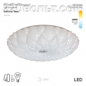 Светильник светодиодный потолочный ЭРА SPB-6-40 из новой серии Malo может быть универсальным источником света в гостиной или кухне, кабинете или прихожей. Его дизайн воплощает собой сдержанную элегантность, уместную практически в любых интерьерах. В основе светильника находится металлическая база с встроенным LED-модулем. Светодиодная лампа имеет 38 см в диаметре, мощность светового потока составляет 40 Вт, продолжительность службы светодиода составляет 30 000 часов. Светильник излучает яркий, но комфортный свет, его цветовая температура составляет 4000 К, световой поток 2700 Лм.
