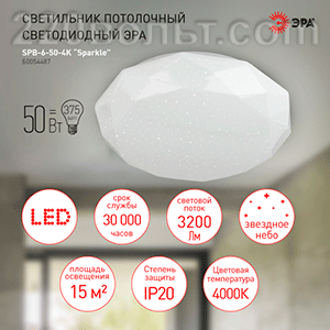 Будьте первым, кто оставил отзыв на “Светильник потолочный светодиодный SPB-6-50-4K Sparkle без ДУ 50Вт 4000K ЭРА”