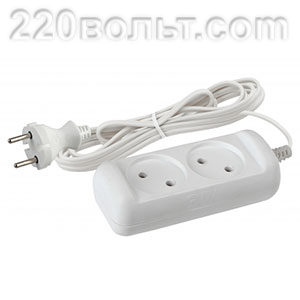 Удлинитель без заземл, 2гн, 3м, ШВВП, 2×0.75мм2, 6А Россия UX-2-3m ЭРА