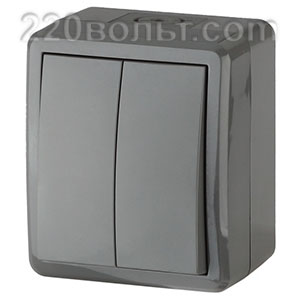 Выключатель двойной IP54, 10АХ-250В, ОУ, Эра Эксперт, серый 11-1404-03 ЭРА герм